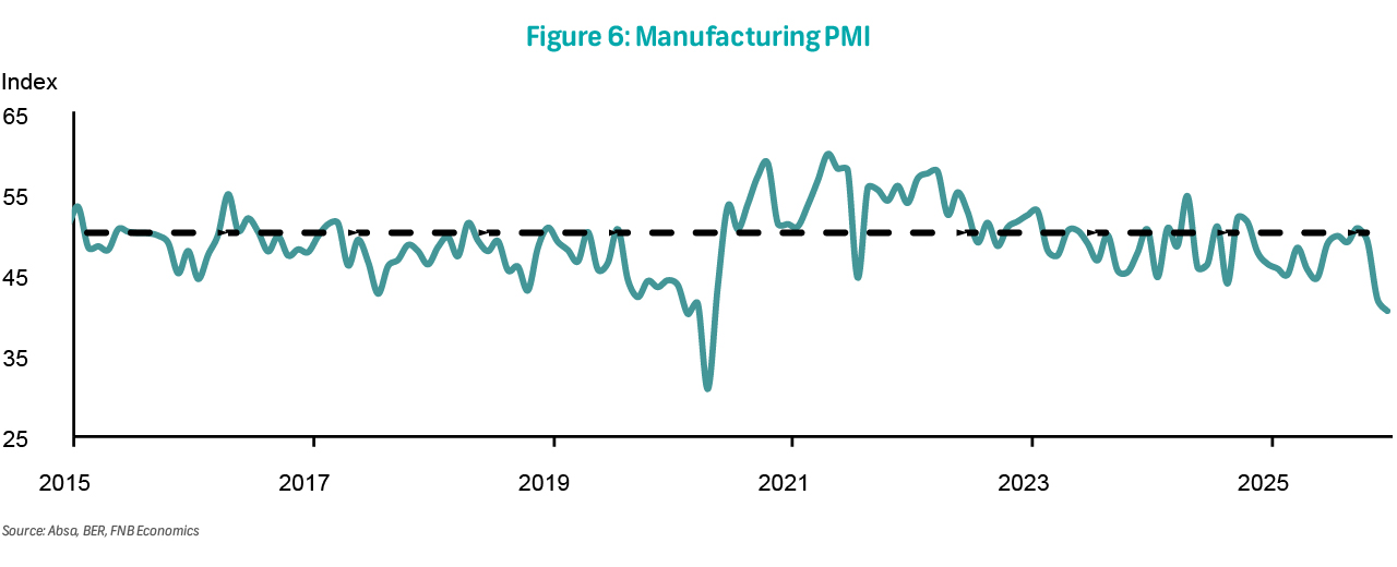 The MPC views SA's economic growth as more stable. After four consecutive quarters of expansion, the economy is expected to continue growing in 4Q25. However, unlike most of 2025, growth in investments should compound gains from household spending over the medium term. That said, the SARB has not changed its growth forecast but noted upside risk instead. We see slightly higher growth this year but slower than the SARB over the period to 2028 (Figure 1). Should the SARB's upside risk materialise while coupled with productivity enhancements, this would still allow policy to shift into neutral territory.
