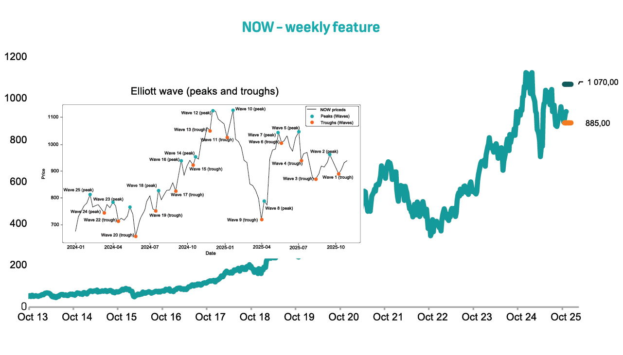 Seasonal trends support a bullish bias. Historically, average monthly returns for NOW since 2000 suggests a seasonally supportive period from November through January.